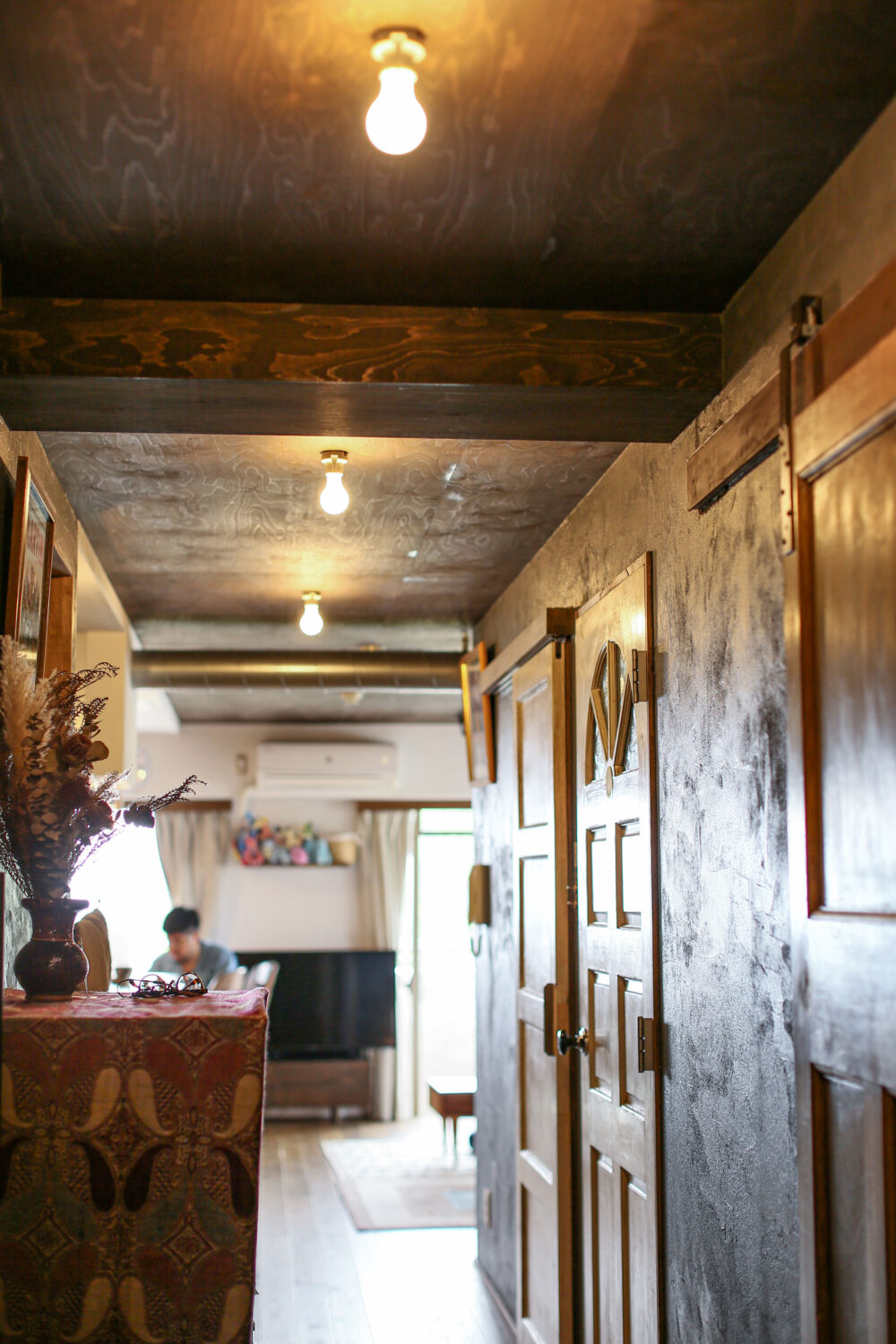 そして玄関を開けた時の、板張りの天井やムードのある照明、リビングに続く長い廊下のアプローチはご主人いちばんのお気に入りポイントだそう。