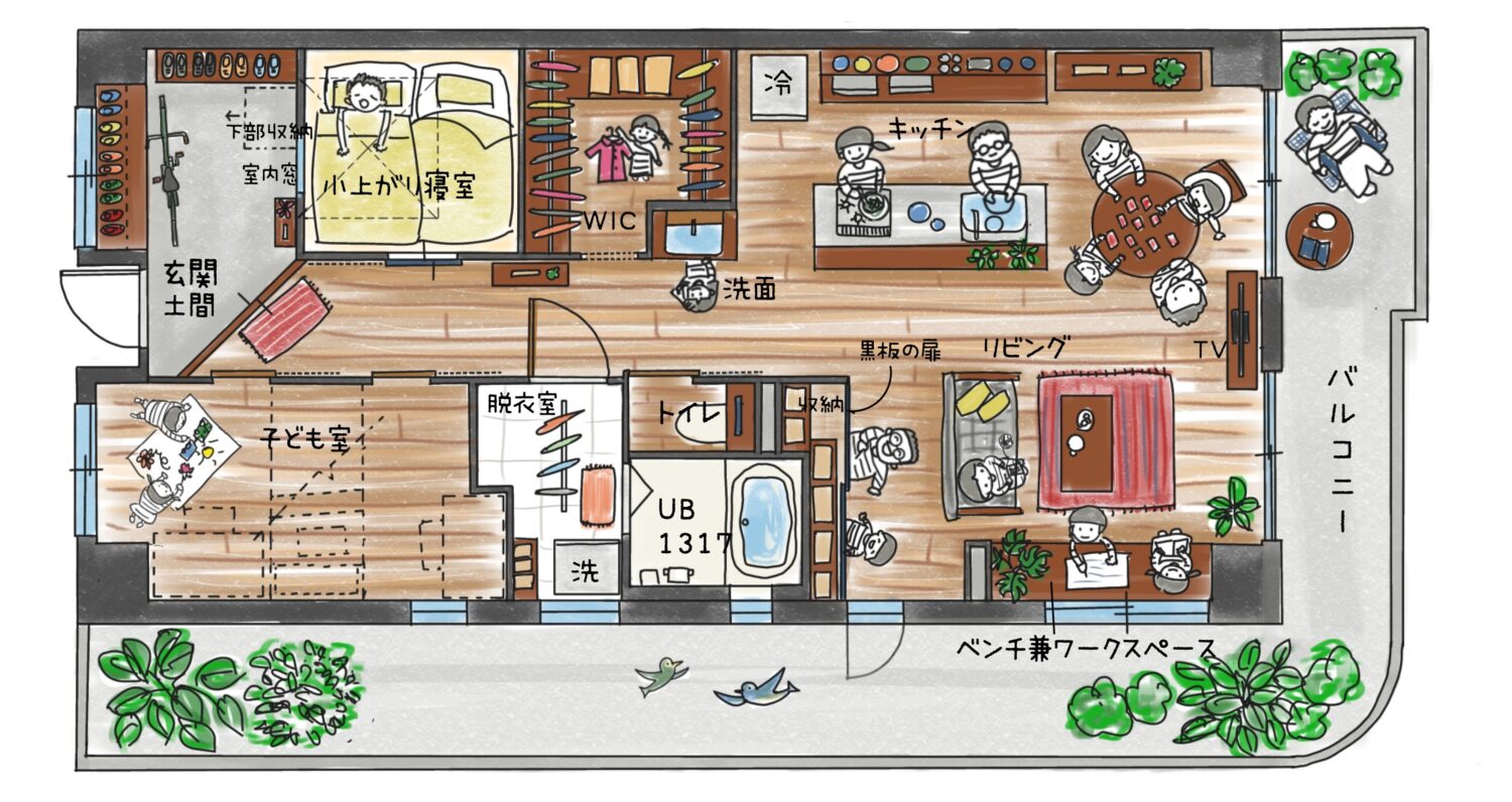 「子供がのびのびと安心して遊べる家になりました。お絵描きをしたり、長い廊下を走ったり。こんな家づくりができるとは完成まで予想をしていませんでした。打合せが毎回楽しくて、終わってしまうのが寂しかった」(ご主人)
