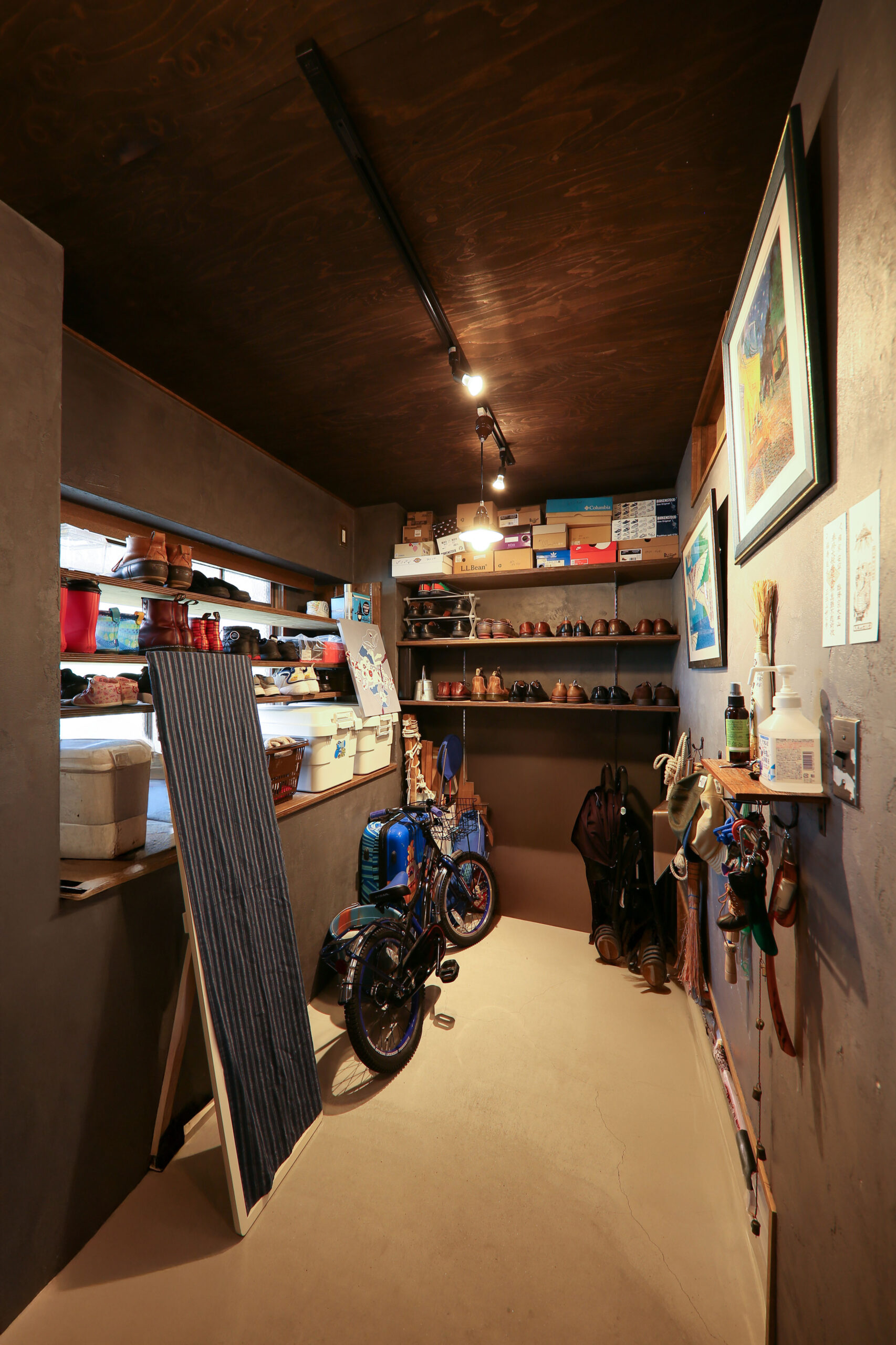 趣味のDIYなど、創作スペースとして確保した広めの土間は、お子さんと一緒に工作をしたり、好きな靴を並べたりと多目的に使える空間です。