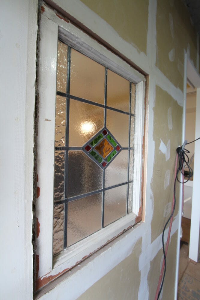 玄関の左手にはアンティークのステンドグラス。