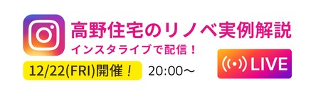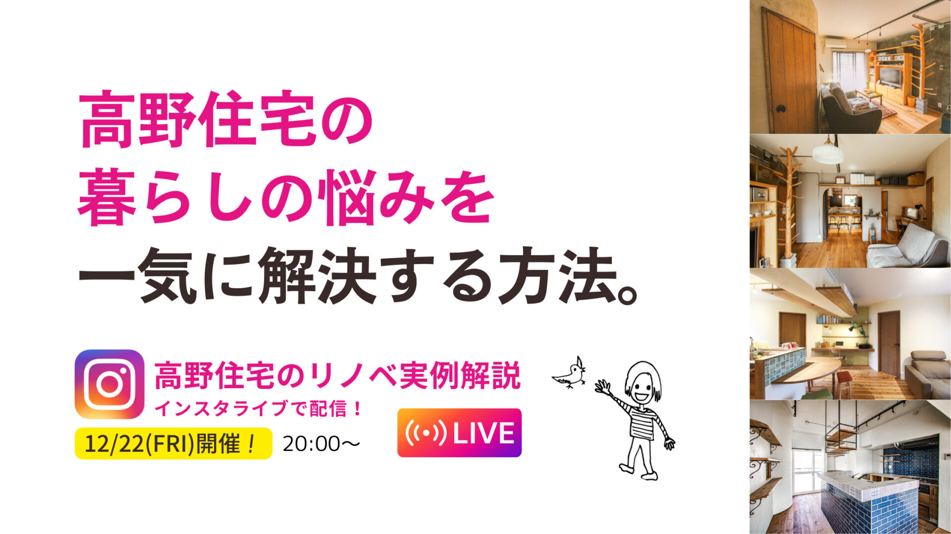 高野住宅において数々のリノベで暮らしを整えてきたミセガマエヤがインスタライブを開催します!高野住宅ならではの暮らしのお悩みと、その解決策についてヨッカ社長がざっくばらんに語ります!