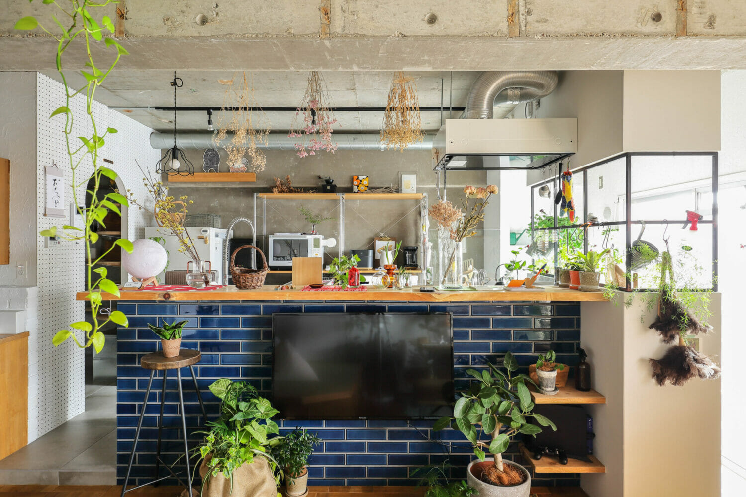 リビング側から見ても、キッチンとお部屋の雰囲気がとてもマッチしていて、統一された世界観が最高に素敵🤍
