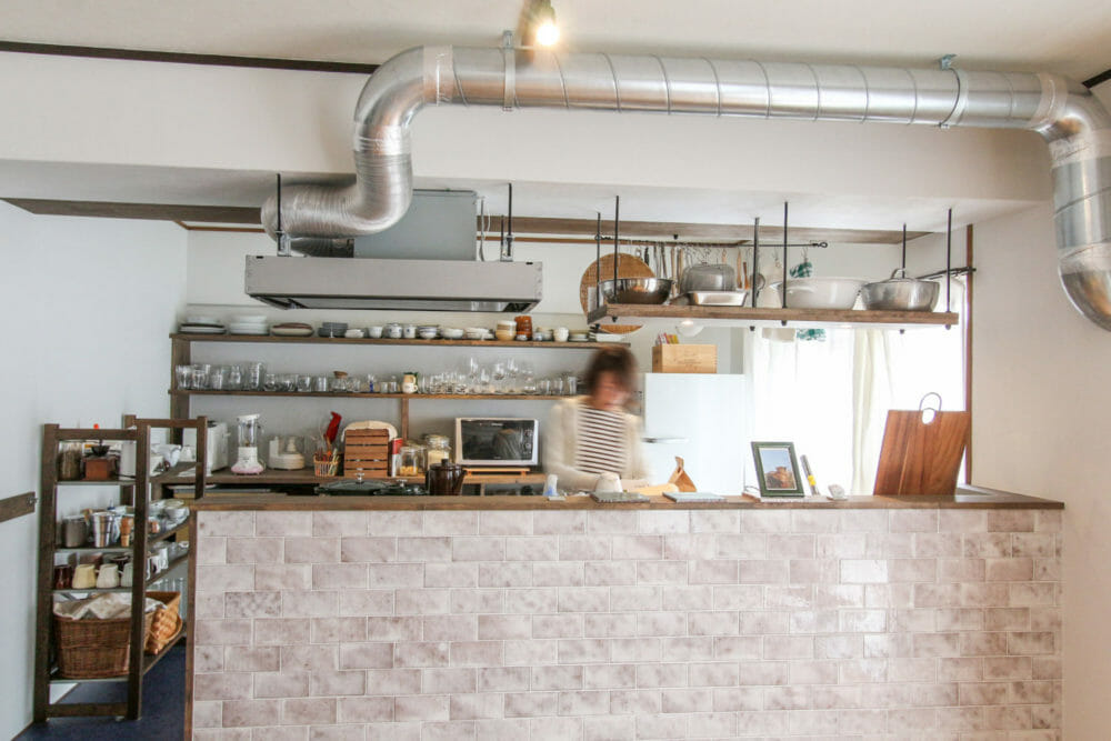まだまだ新しかったキッチンは移設して既存利用。お料理好きのU様が以前から集めておられた食器や調理器具が使いやすく並びます。