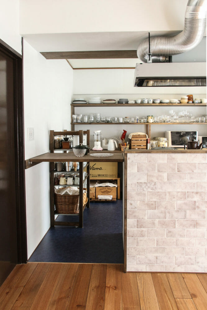 食材や作りかけのお料理を置けるように、キッチンの横に跳ね上げ式の作業台を取り付けました。「これ、かなり重宝してます!」とU様。