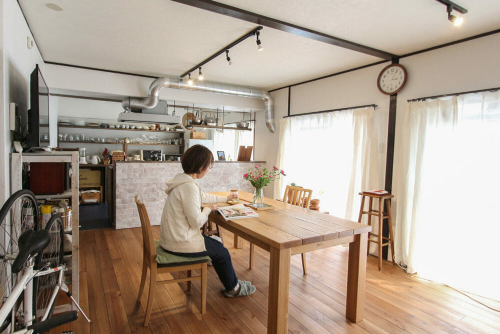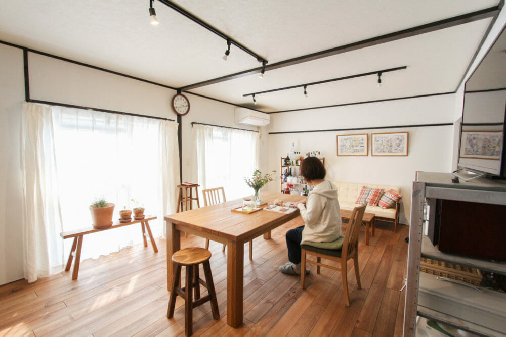 もともとのレトロな雰囲気をそのままに、好きなものだけを集めたU様のLDK。 広々したリビングに友人が集まり、音楽を聴きながら料理とお酒と会話が弾みます。