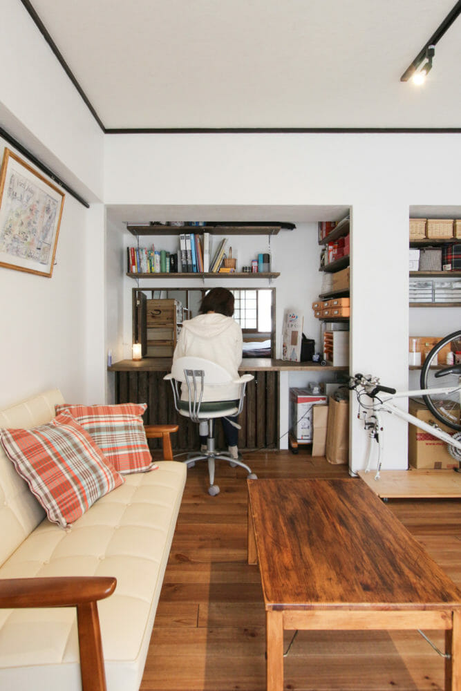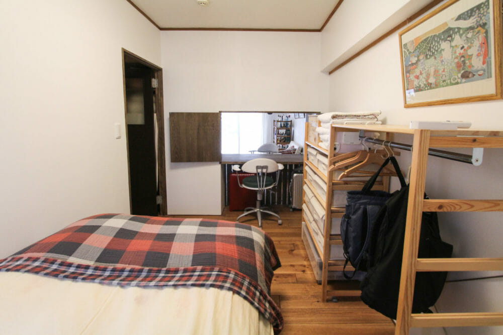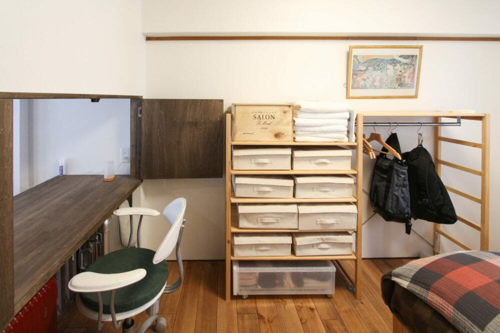集中して勉強したい時の為のワークスペース。寝室の風通しを良くするため、デスク前には開閉できる扉を取り付けました。