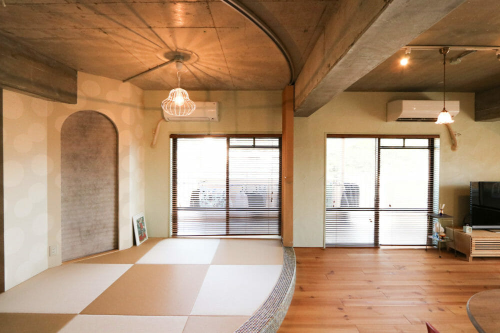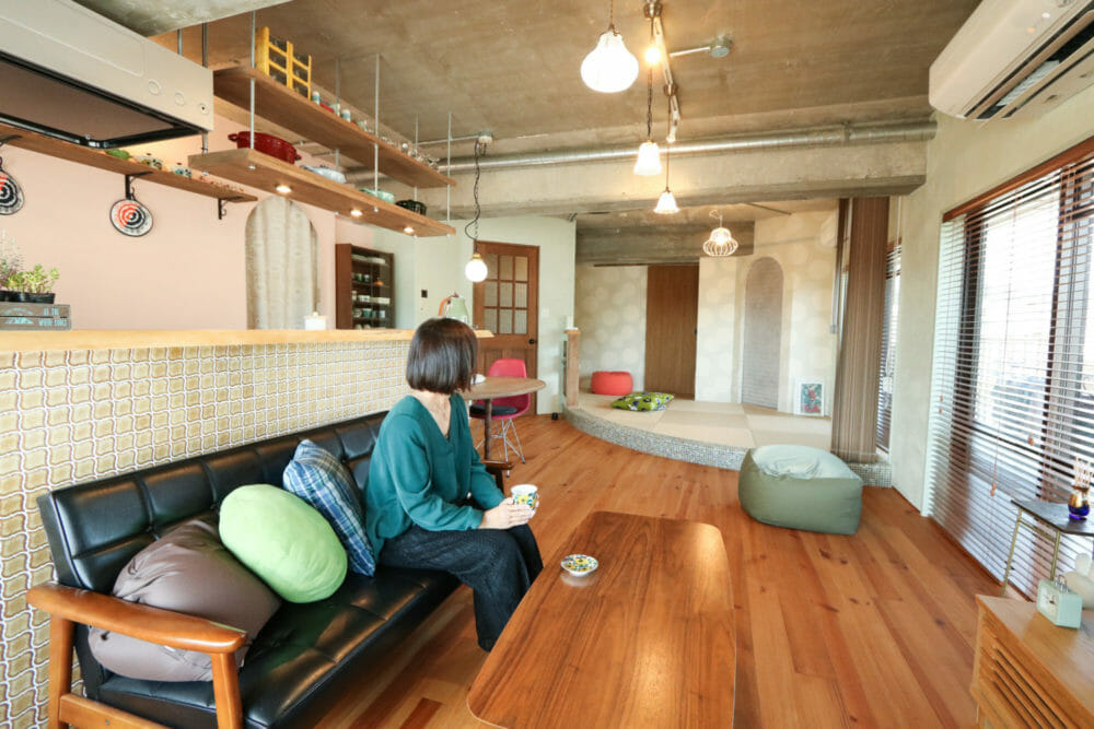 小上がりの畳やソファーやキッチンなど、居場所がいっぱいできたI様邸。家族や友人たちが集まって、ゆっくりくつろげる場所にしたいそうです。