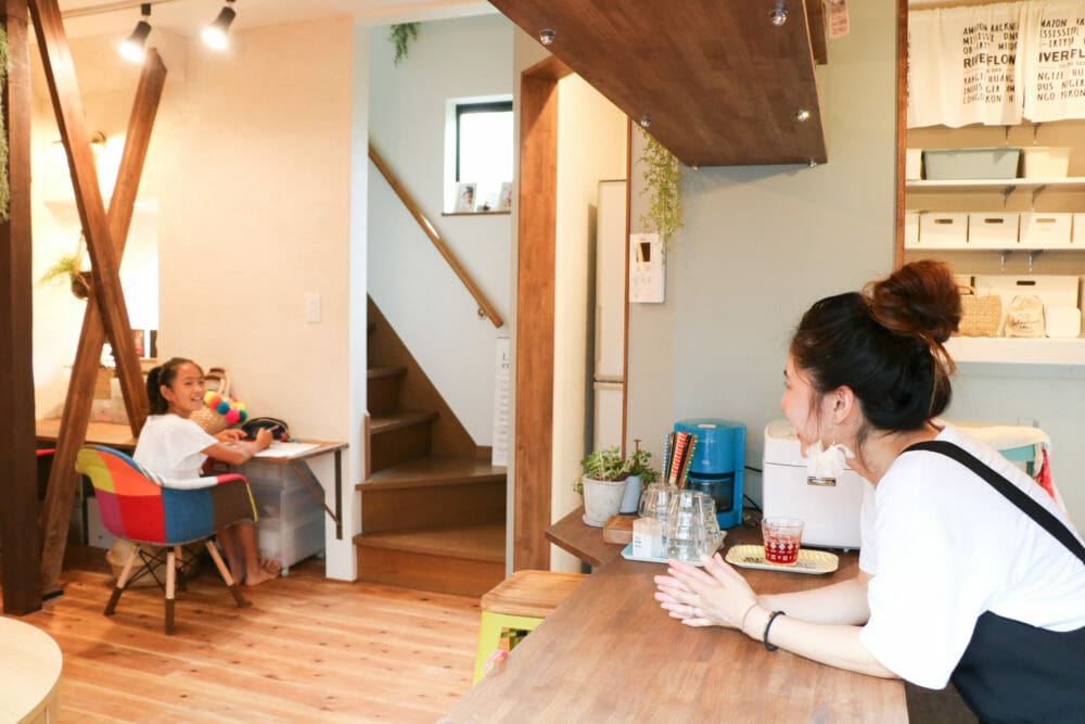 これまでは自宅でお仕事をされているご主人の仕事場がダイニングテーブルだった為、食事の際は毎回荷物を大移動したり、野球の練習で付いた砂がリビングに持ち込まれたり・・・