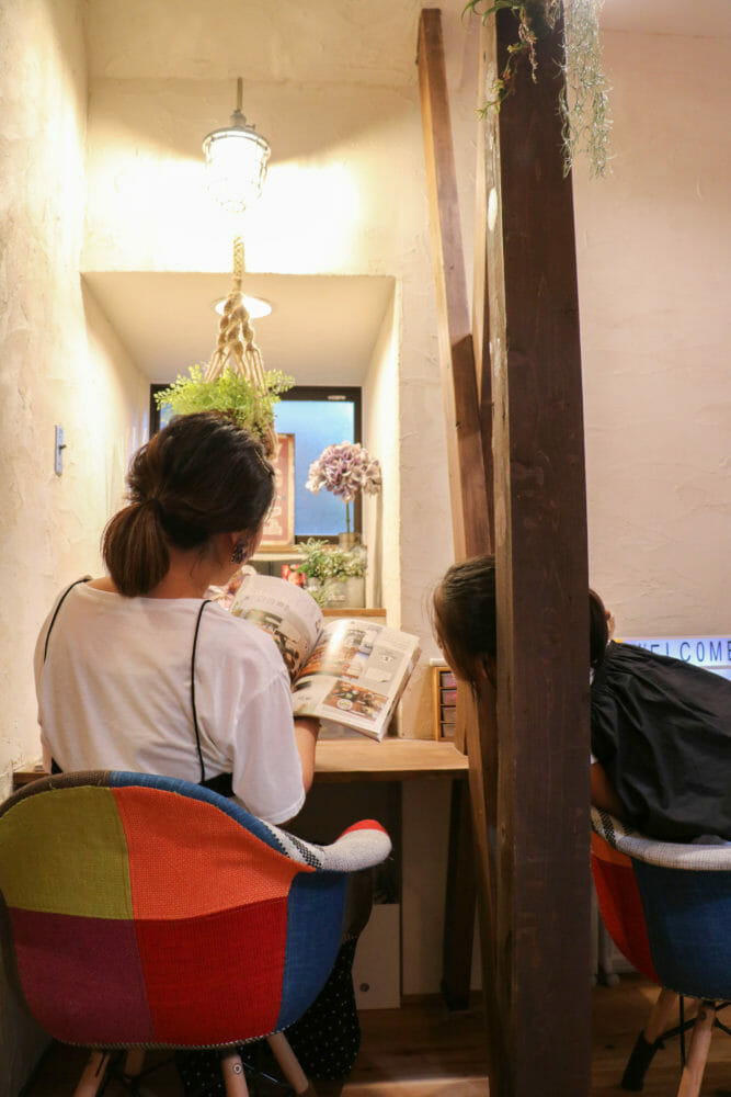 暗くなりがちな階段下スペースには窓を取り付け、光の入る楽しいディスプレイコーナーになりました。このちょっとしたスペースが結構落ち着けるんです。