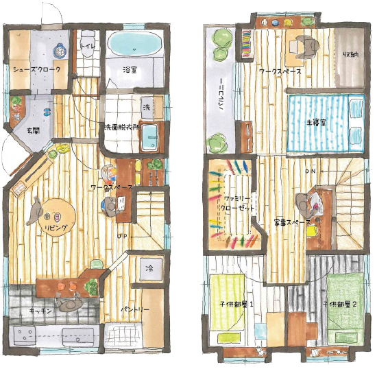 これまでは自宅でお仕事をされているご主人の仕事場がダイニングテーブルだった為、食事の際は毎回荷物を大移動したり、野球の練習で付いた砂がリビングに持ち込まれたり・・・