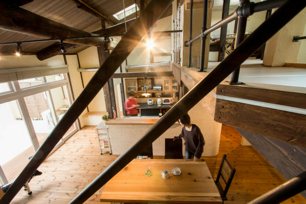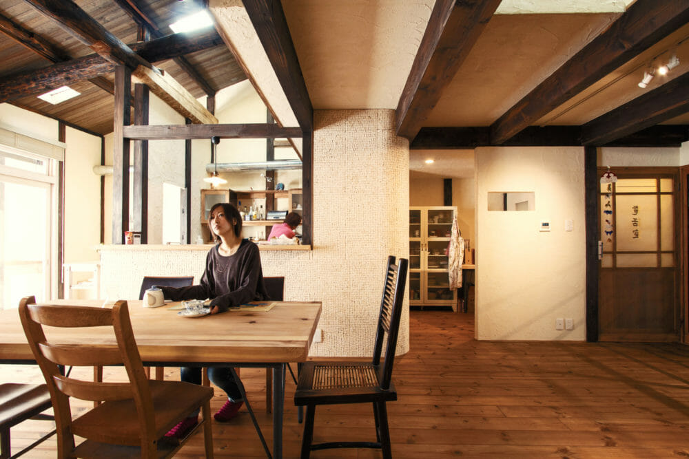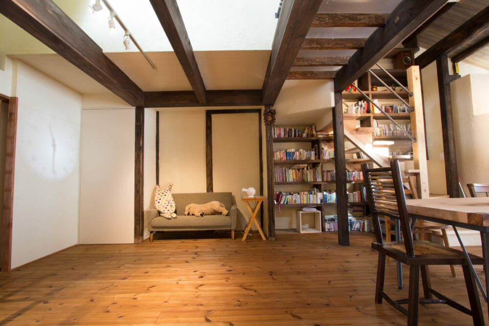そんな中、Nさんが見つけた築後100年の素敵な京町家に一目惚れ。元織物工場だったこの建物は、吹き抜けの登り梁が印象的で、N様ご家族にぴったりの家でした。ただし、蟻害や雨漏りがあり、大規模な地震対策が必須でした。