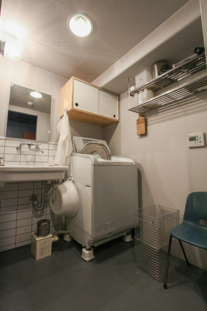 ステンレスの棚はもともとキッチンに設置されていたものを再利用。実験シンクはつけ置き洗いにも使い勝手抜群です。