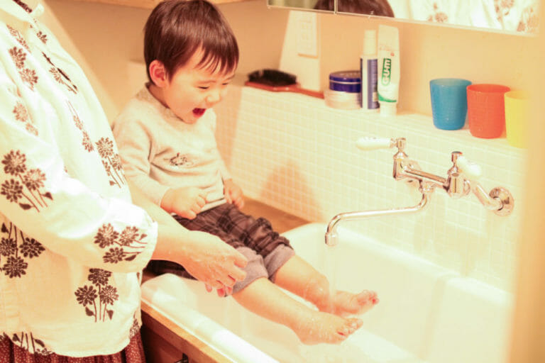 大きな実験用シンクは洗濯物のつけ置き洗いはもちろん、外でいっぱい遊んできたお子さんの足を洗うにも大活躍♪