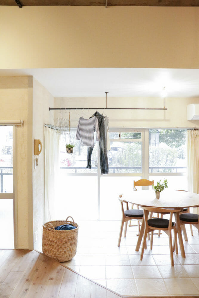 室内干し用にアイアンバーを取り付けました。これだけで洗濯物がオシャレに見えるって不思議。