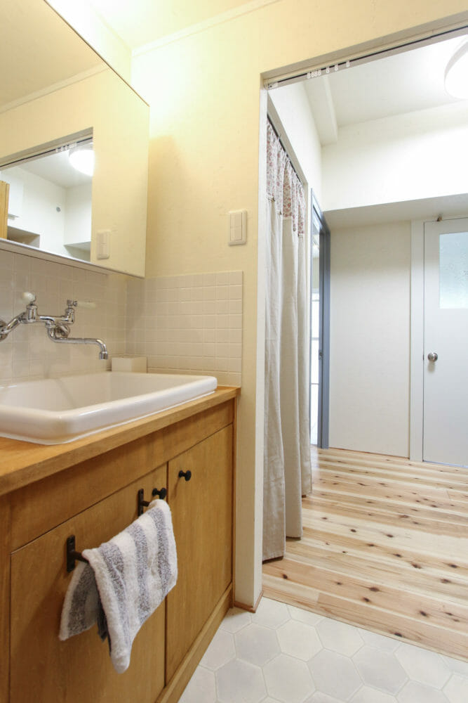 とにかくスッキリ気持ち良く暮らしたい!と奥様。洗面台も清潔感のある白でコーディネートしました。