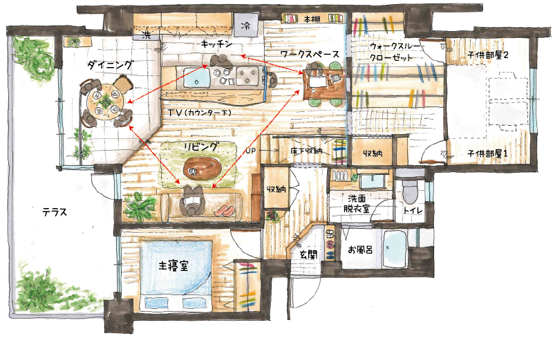 「家族同士が見守り合いながらそれぞれの活動ができる家にしたい」とのご要望でした。