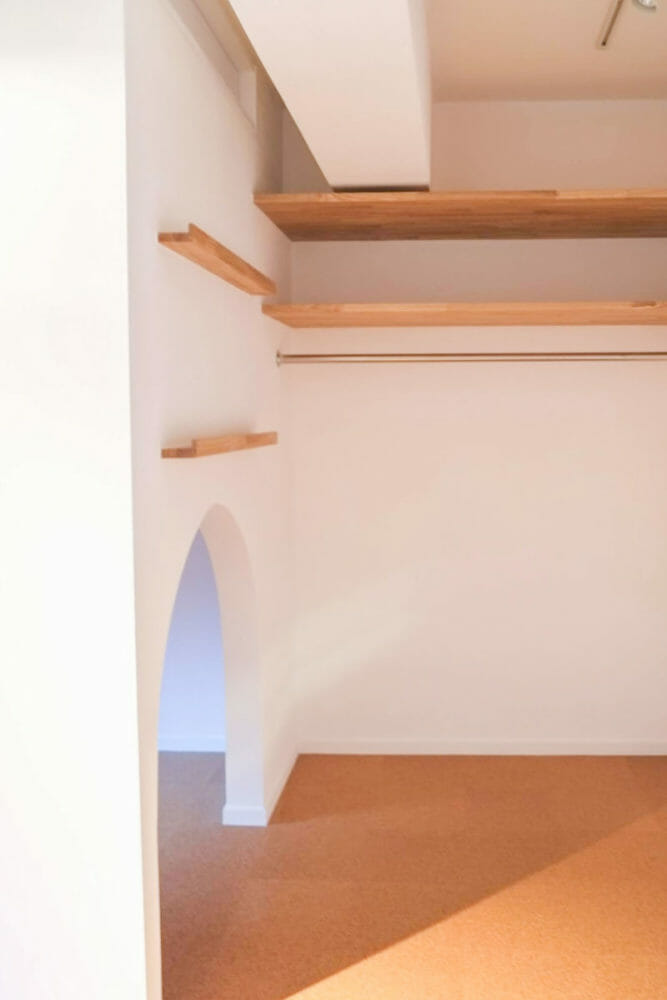 ミニマムながらも、アールの壁で心地よい囲まれ感のある子供部屋。