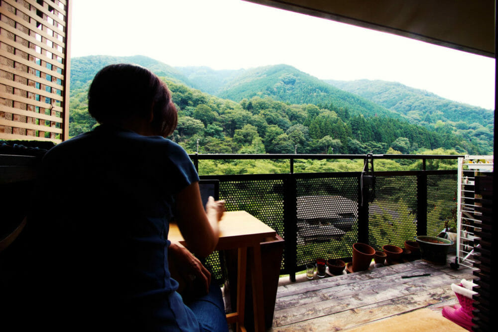 絶景を見渡せるバルコニーで読書&ティータイム。