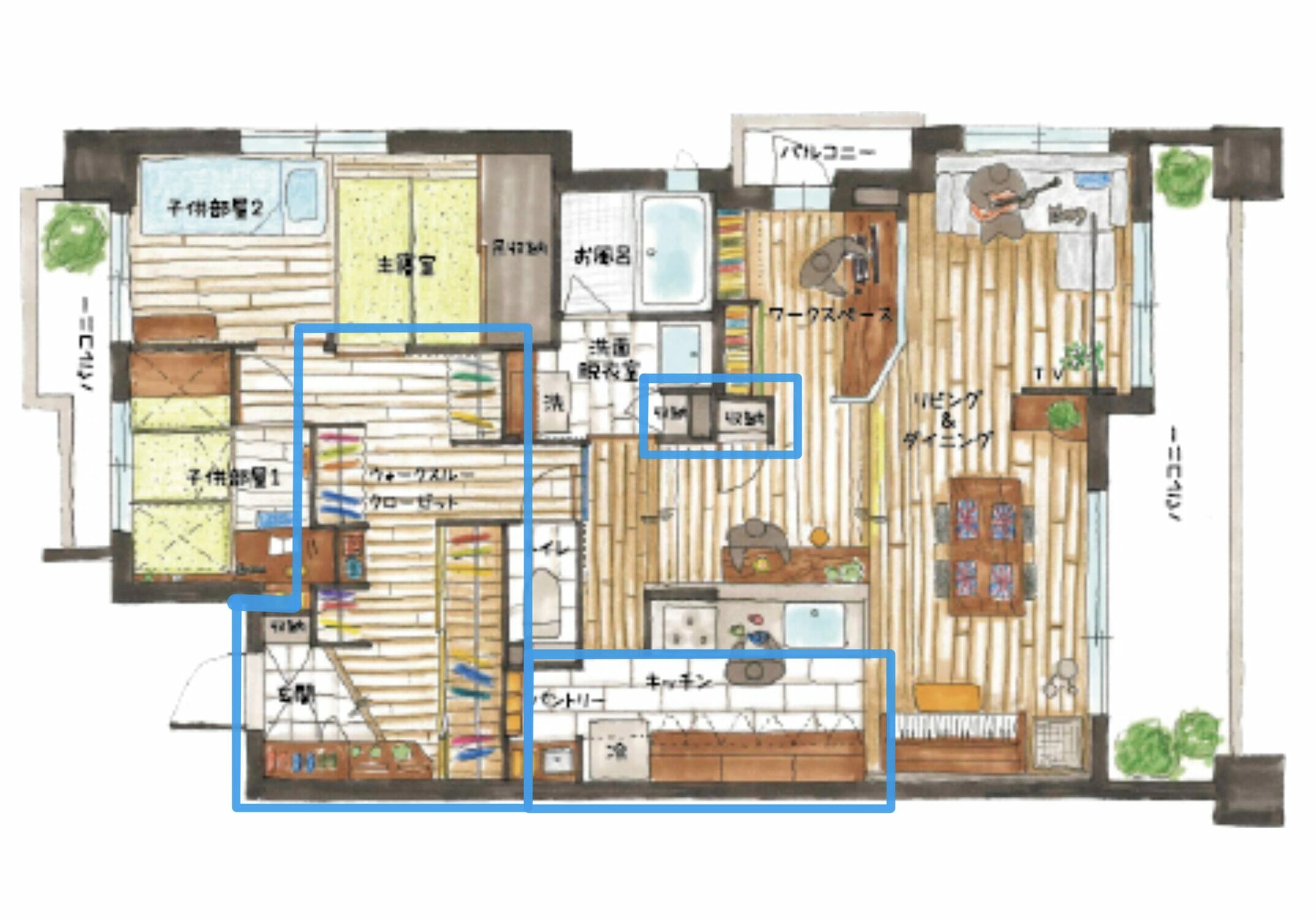 「使いたい場所に収納がなくて仕方なく離れた場所に置いていたり、どこに何があるか家族にはわからなかったみたいで…。以前の家で悩んでいたのが収納に関してでした」
