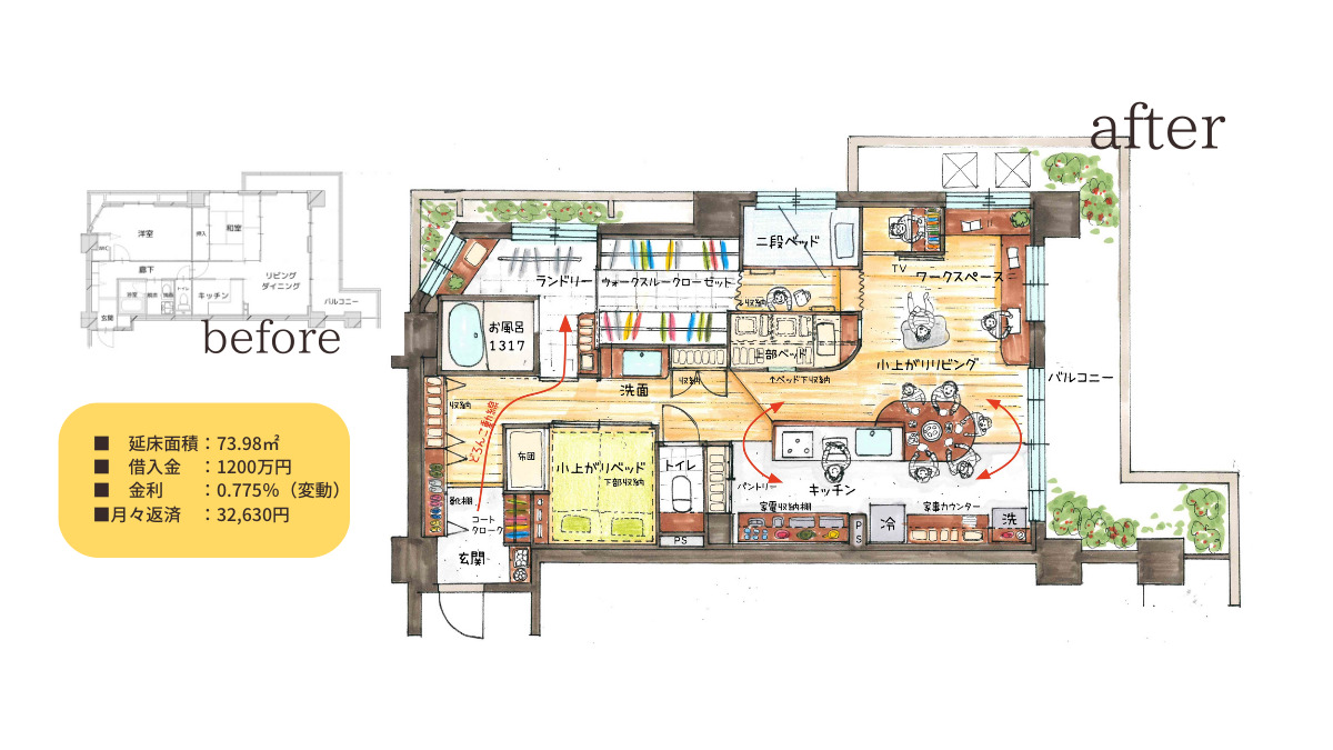 「子供たちが成長するにつれ、一人ひとりのプライベートな空間が必要になってきました。でも、我が家の間取りではそれが難しいんです。子供たちはリビングの片隅で宿題をしたり、友達と話したりしていますが、お互いのスペースが重なり合ってしまって。時には「静かにして!」という言葉が飛び交い、家族間の小さないざこざが増えています。個々に自分の時間と空間を持てるようになりたいで。」