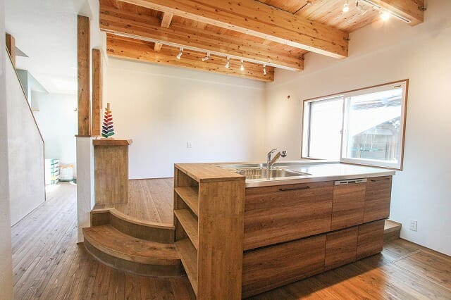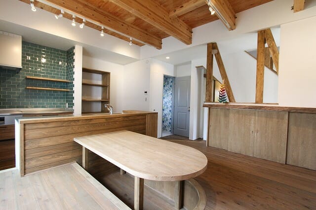 ダイニングからリビングまで子供たちがお家の中でもたっぷりと走り回れる