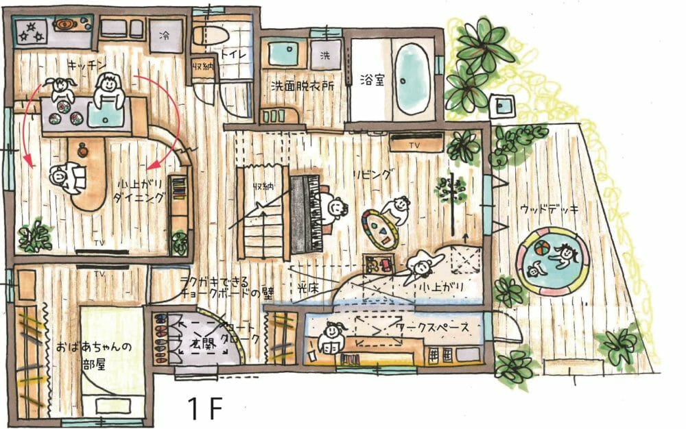 用途は分けながらも、ゆる~く繋がりのある間取りは