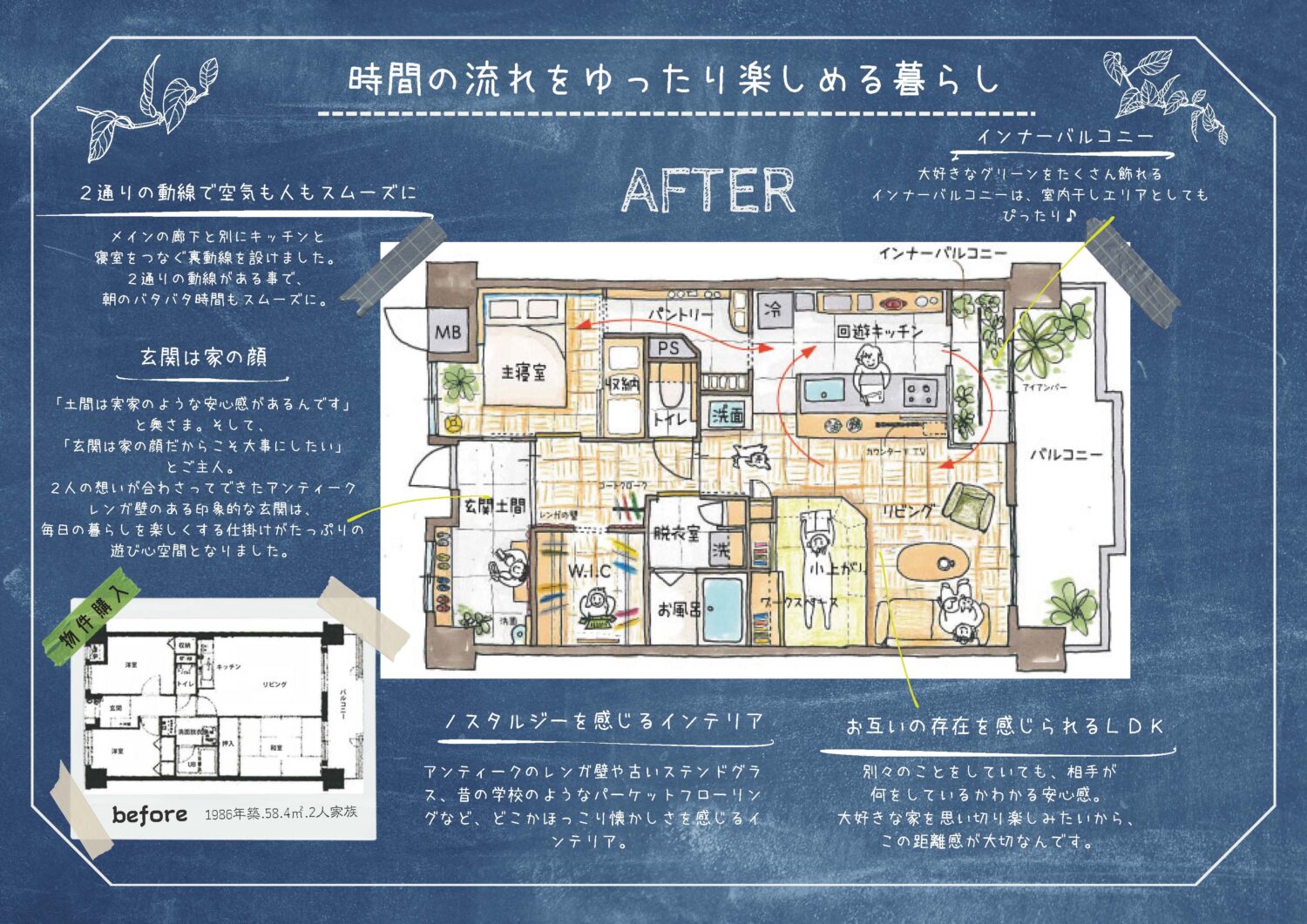 自然体で暮らすだけで、”ごきげん”が自然と増える♪そんな唯一無二の魔法をリノベーションで叶えた、実際のプレゼン時の資料です。